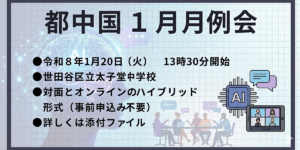 1月月例会案内 2024 12/27 月例会 2024年12月27日 月例会の案内をお届けします。詳しくは、添付PDFファイルをご覧ください。申し込みの必要はありません。会場にお越しいただくか、ZOOMでの参観をお願いします。 R6書くこと分科会月例会案内ダウンロード 月例会 よかったらシェアしてね! URLをコピーしました! URLをコピーしました! 令和6年度夏季研修会報告 令和6年度春季研修会 この記事を書いた人 tochukoku2023 お問合せはメールまでお願いします。 tochu.koku@gmail.com 関連記事 令和7年度都中国1月月例会(情報) 2025年12月5日 令和7年度都中国1月月例会(話す聞く) 2025年11月27日 令和7年度都中国11月月例会 2025年10月29日 令和7年度都中国9月月例会 2025年8月20日 コメント コメントする コメントをキャンセルコメント ※ 名前 ※ メール ※ サイト 次回のコメントで使用するためブラウザーに自分の名前、メールアドレス、サイトを保存する。